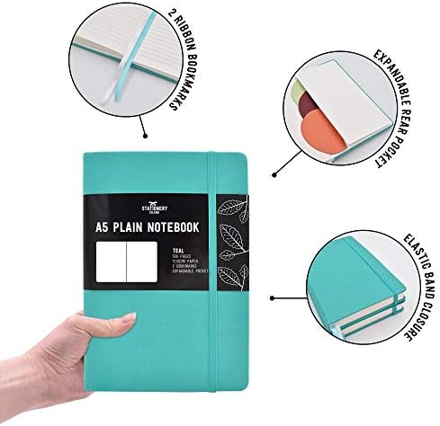 Stationery Island A5 Blank Notebook – Teal. Hardback Plain Journal with 180 Pages and Premium 120gsm Paper. for Notes, Planning, Study, Travel, Drawing, Sketching and Projects