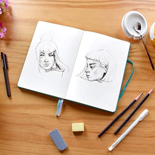 2 BOOKMARKS, 1 POCKET – Our drawing notebook lets you keep tabs of your most important pages and content with 2 ribbon bookmark dividers, whilst all of your essential accessories and supplies such as stickers, rulers, stencils and tabs can be kept neatly in the expandable pocket affixed to the rear cover