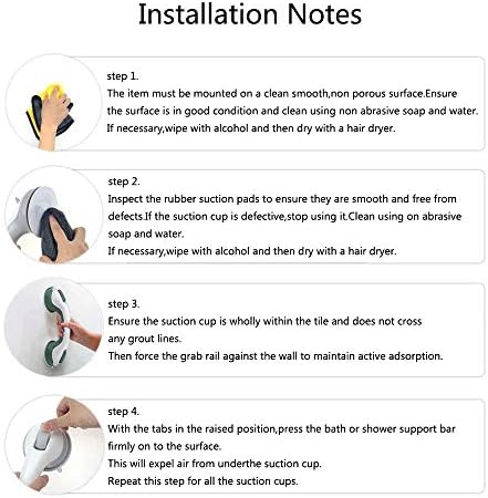 2. Be sure to install the handrail according to the use method of the product’s listing to confirm that the Suction Grab Bar is