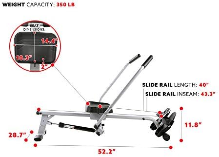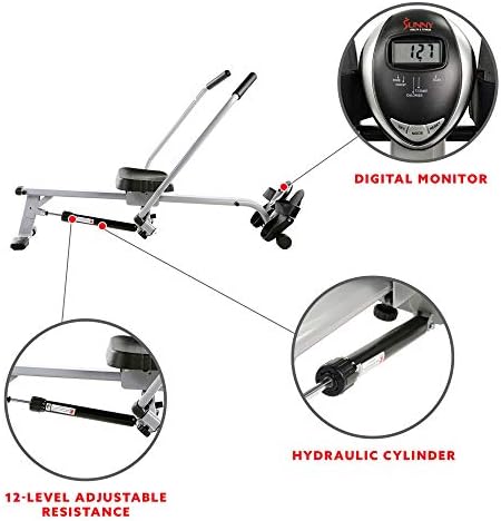 Sunny Health & Fitness SF-RW5639 Full Motion Rowing Machine Rower w/ 160 KG (350 LB) Weight Capacity and LCD Monitor