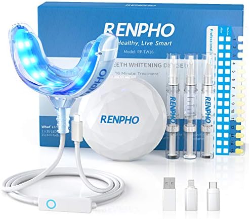Teeth Whitening Kit, RENPHO 16 LED Tooth Whitening Kit Professional with (4ml) x3 Gels for White Teeth, Premium Dental Care Bleaching Kit with Mouth Tray for Home and Travel