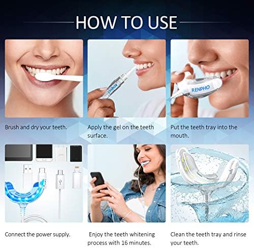 Professional Team Services: The RENPHO Teeth Whitening Kit comes with 1 x16 LED Teeth Whitening, 3 x 4ml Gels, 3 x Micro USB To Adapter (Type C/Lightning/USB ), 1 x User Manual, 1 x PVC Tooth Color Card, 1 x Warranty Card. Please feel free to contact us if any quality issue within 24 months after the day of purchasing. We’ll do our best for you with Professional RENPHO Local UK-based Office.