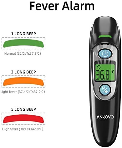 Multiple Functions: Temporal thermometer comes with a high temperature alarm system, display green, orange or red to indicate high temperature, Green for normal, orange for light high temperature, red for high temperature. 35 sets of memories and easy to recall. Auto shut down and power saving
