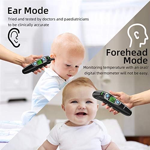Thermometer for Adults, Non Contact Ear and Forehead Thermometer, Digital Infrared Thermometer for Fever with LCD Screen, Memory Recall, Fever Alarm, Used for Baby, Kids, Children