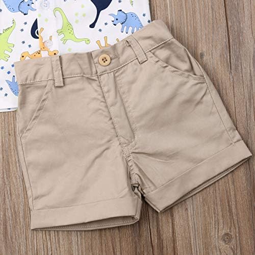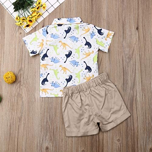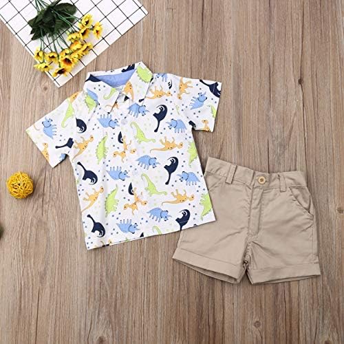 Toddler Boy Animal Dinosaur Print Short Sleeve Button Shirt+Woven Shorts Set 2 Piece Outfits Set Formal Clothes Set