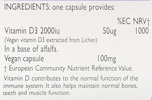 Ingrediants : NoVitamins D3 (2000iu) 50ug In a base of alfalfa.