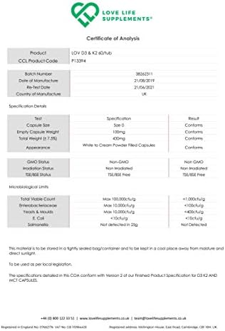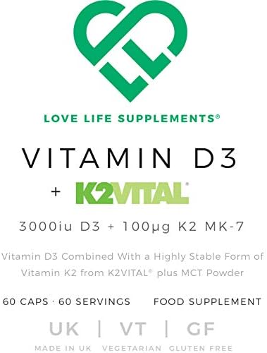 Vitamin D3 + K2 (MK-7) by LLS | 3000iu D3 + 100μg K2VITAL® K2 MK-7 | Includes MCT Powder | Love Life Supplements – ‘Clean, Effective, High Quality’