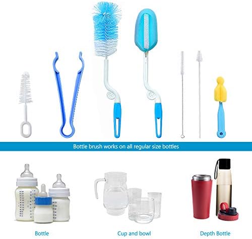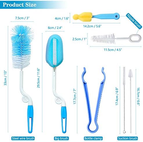 Wandefol 7pcs Baby Bottle Brush, Feeding-Bottle Brush, Baby Bottle Wash Kit, Nursing Bottle Brush Kit Blue